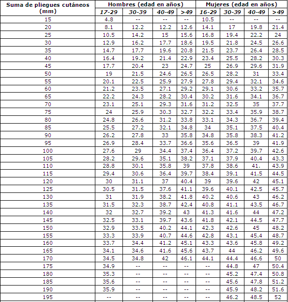% Body fat guide