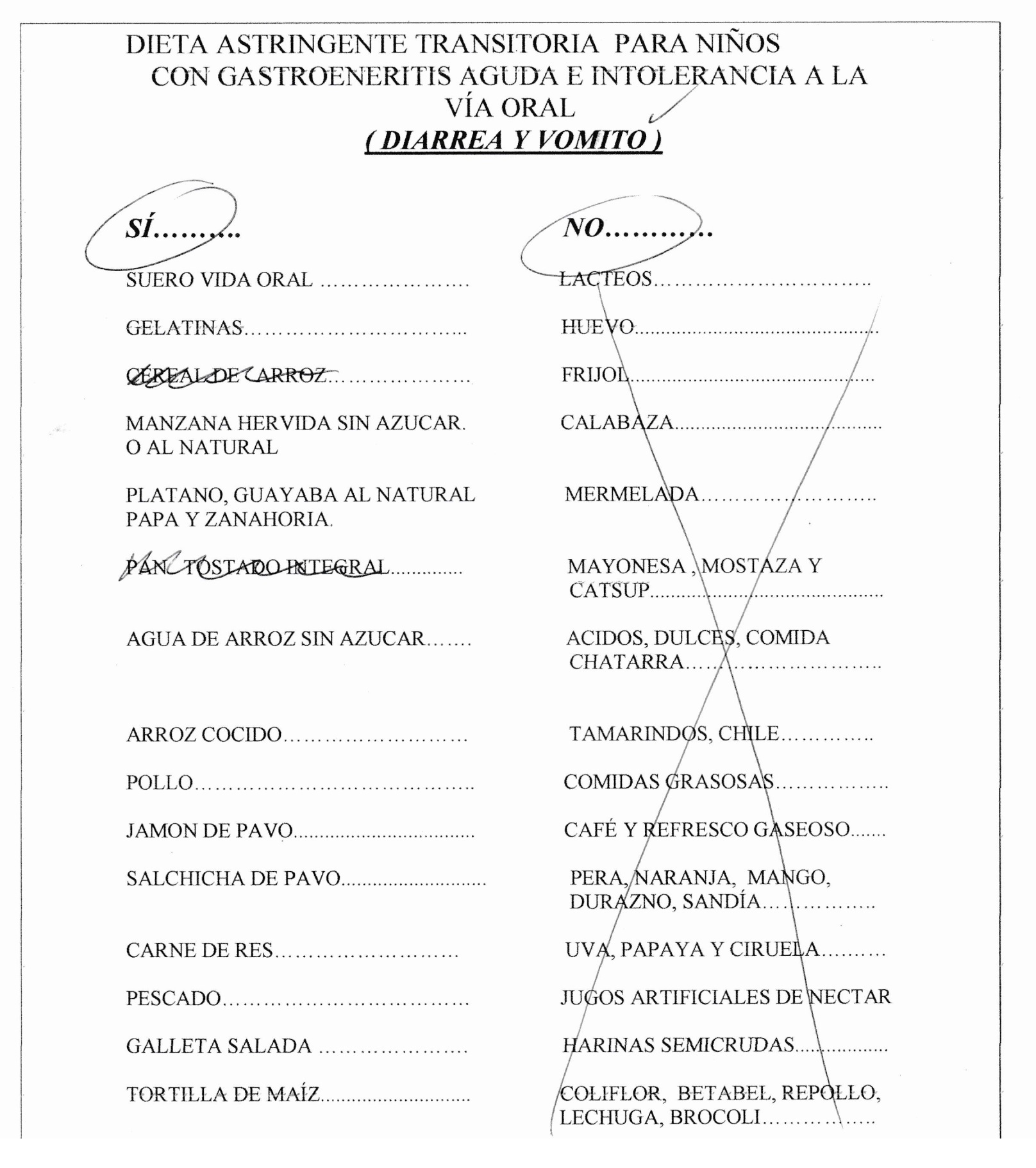 Dieta Astringente Transitoria para niños con gastroenteritis aguda e intolerancia a la vía oral (diarrea y vomito)