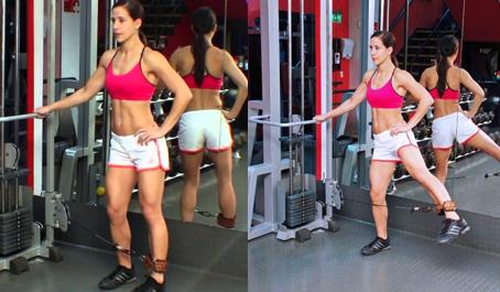 6 - Elevación con pierna recta en polea baja 10 parciales y 10 completas 4 x 20