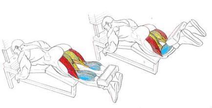 3 - Curl acostado levantando el cuadriceps 15 , 12, 10 , 10