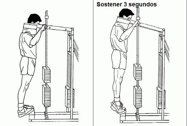 Pantorrilla de pie 4 x 15 (Sosteniendo al llegar arriba 3 segundos)