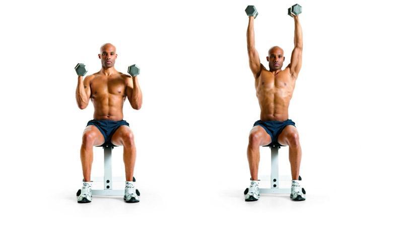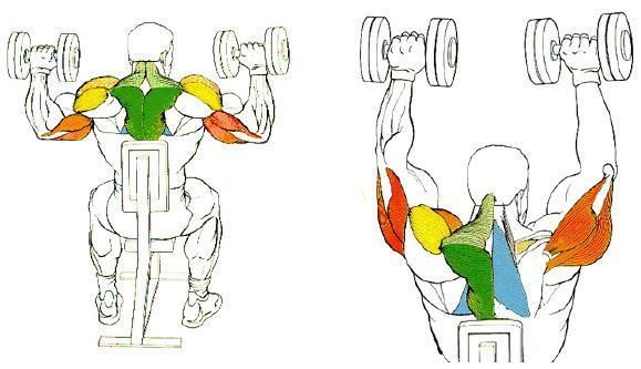 5 X 10 a 12 Militar press con mancuernas alternado con flies con mancuernas y con pájaros con mancuernas