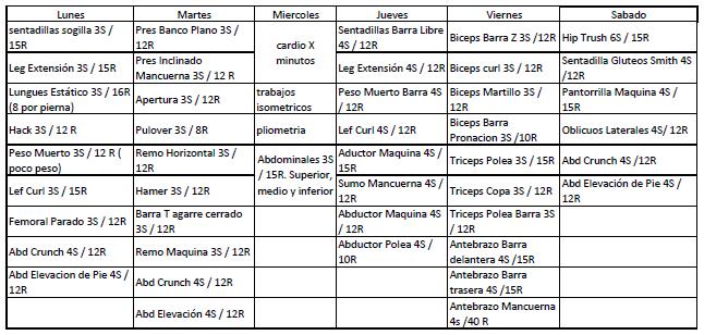pesas nivel 1 - WEIGHTS >>> Return <<< Save in bookmarks pesas nivel 1 Category WEIGHTS Any one Created 2022-12-28 20:39:15 Showing to all users Yes Visits 6041 2 2 Like Don't Like Workout Routine created by ELREYGASPAR Workout routine for... Chest Back Trapeze Abdomen Shoulder Biceps Triceps Forearm Glutes Cuadriceps Abductors Adductors Femoral Calf 2 Like Don't Like