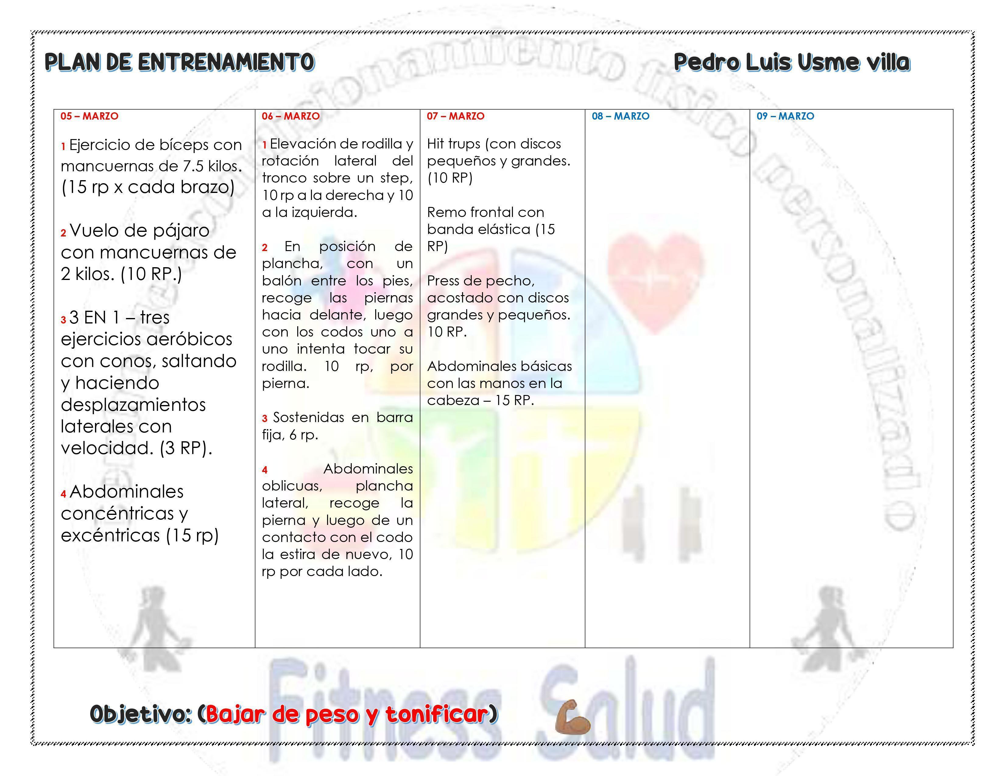 1 Ejercicio de bíceps con mancuernas de 7.5 kilos. (15 rp x cada brazo)