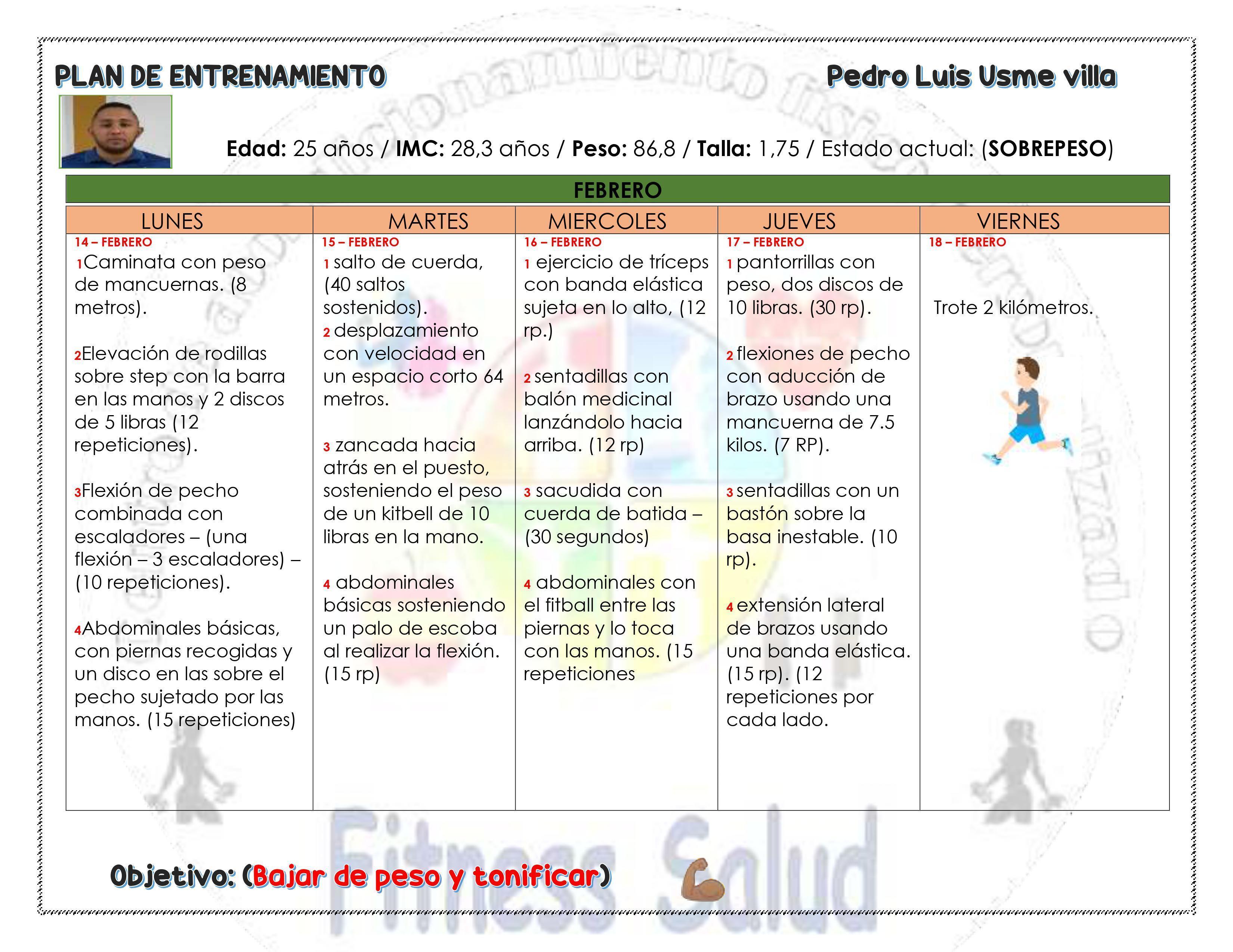 Edad: 25 años / IMC: 28,3 años / Peso: 86,8 / Talla: 1,75 / Estado actual: (SOBREPESO)