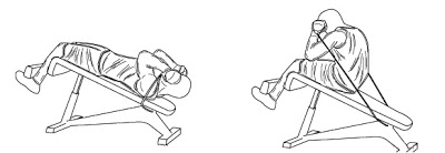 >> Ejercicio #2: Encogimientos abdominales acostado en banco horizontal, usando polea baja