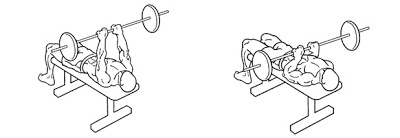 >> Ejercicio #3: Press francés con barra en banco plano +  Lagartijas con manos juntas (formación V)