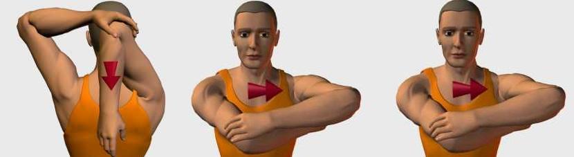 2. Perform stretches for triceps , 5-10 seconds per arm, repeat 3 to 4 times.