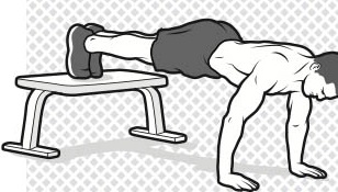 Flexion con pies elevado , 4 ser de 15 reps